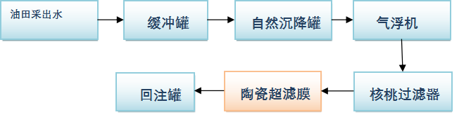 某站(zhàn)油田采出水(shuǐ)原處理(lǐ)工(gōng)藝為:油站(zhàn)來水(shuǐ)→除油罐∞→一(yī)次罐→提升泵→SSF(懸浮污泥床) →二次罐→外(wài)輸泵→金(jīn)屬膜→回注 (金(≠jīn)屬膜分(fēn)為兩級,一(yī)級孔徑 10µm,二級 0.5µm),§該處理(lǐ)工(gōng)藝處理(lǐ)水(shuǐ)不(bù)能(néng)達到(dào)回注水(shuǐ)A1級標準,金(jīn)屬膜污染嚴重,清洗頻繁,&使用(yòng)壽命不(bù)長。采用(yòng)50nm陶瓷膜代替金(jīn)屬膜,使出水(shuǐ☆)水(shuǐ)質達到(dào)回注水(shuǐ)A1級標準。