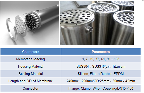 A housing filled with ceramic membrane elements is called ceramic membrane module$. Based on the demands, the modules can be different.☆ It is available to combine different OD or area of ceramic membrane elements together €into one module. The design of outline and sealing type of Ceramic Membrane Module is significant, for the whole system operation.