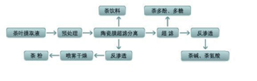 茶葉是(shì)我國(guó)的(de)優勢資源,茶飲料産業(yè)的(de)興起,推動了(le)茶葉深加工(gōng)的(de)産業(€yè)化(huà)步伐。茶飲料的(de)混濁問(wèn)題是(shì)目前茶飲料生(shēng)産的(de)技(jì)術→(shù)難題之一(yī)。造成混濁的(de)原因大(dà)多(duō)與茶湯中茶多(duō)酚物(wù)質、咖啡堿、可(kě)溶性蛋白(bái)、果膠等物(wù)質間(jiān)的(de)絡合絮凝有(yǒu)關。傳統分(fēn)離(lí)提取方法主要(yào)采用(yòng)®機(jī)械過濾、高(gāo)速離(lí)心及化(huà)學法處理(lǐ)等,澄清效果欠佳,産品質量較差。以無機(jī)陶瓷膜分(f♠ēn)離(lí)技(jì)術(shù)為(wèi)基礎的(de)集成膜分(fēn)離(lí)技(jì)術(shù)使這(zhè)些(xiē) 問(wèn)題得(de)以解決:茶湯中大(dà)分(fēn)子(zǐ)的(de)蛋白(bái)果膠等被陶瓷超濾膜去(qù)除同時(shí)茶多(duō) 酚、咖啡堿、氨基酸、兒(ér)茶素等有(yǒu)效成分(fēn)得(de)到(dào)了(le)最大(dà)限度的(de)保留,保證了(le)茶飲料的(de)風(fēng)味和¥(hé)穩定性;同時(shí)對(duì)澄清後的(de)茶汁采用(yòng)反滲透膜濃縮,取代了(le₩)傳統的(de)蒸發濃縮工(gōng)藝。
