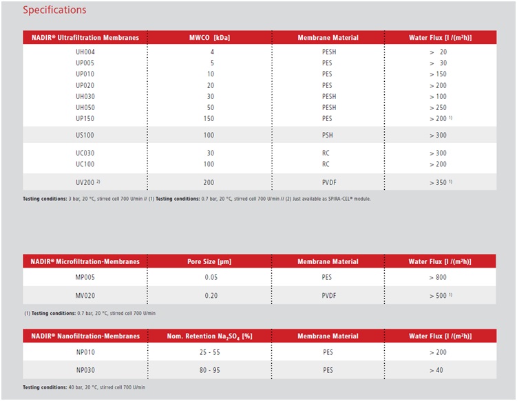Nadir膜片是(shì)可(kě)以截留各種分(fēn)子(zǐ)量的(de)微(wēi)濾、超¥濾和(hé)納濾膜片,采用(yòng)聚醚碸(PES), 親水(shuǐ)的(de)聚醚碸(PESH)和(hé)聚碸(PSU),醋酸纖維素(RC),聚偏氟☆乙烯(PVDF)等高(gāo)分(fēn)子(zǐ)材料制(zhì)成,Nadir膜的(de)主要(yào)特性包括:親水(shuǐ),化(huà)學穩定性高(gāo),親水(♣shuǐ)性極好(hǎo),抗氧化(huà)性強。