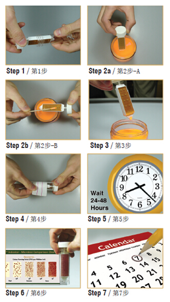 第2步-A:抓住瓶蓋部分(fēn),将微(wēi)生(shēng)物(wù)檢測片完全浸沒入無顔填料的(de)水(shuǐ)性産品5至∑10秒(miǎo)鐘(zhōng)。然後進行(xíng)第3步,