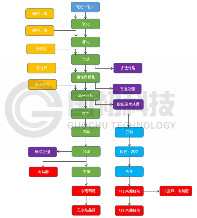 &nbs p; &nb€sp; ∞ 圖2 葡萄糖以及衍生(shēng)產品工(gōng)藝流程簡圖