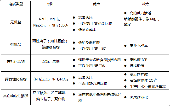 針對(duì)不(bù)同的(de)滲透壓,汲取液再生(shēng)過程可(kě)以輔以不(bù)同的(de)技(jì)術(shù), 包括反滲透,膜蒸餾,電(diàn)滲析等等。