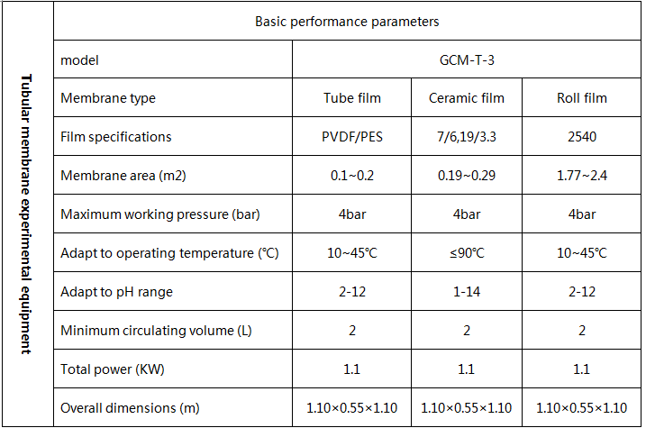 Tubular membrane experimental equipment is a multi-fun¶ctional experimental equipment, according to the needs of the test tube≤, ceramic film, and spiral wound membrane. For solid-liquid separation, clarification and filtratio∏n, sterilization, demulsification and other experimental study. According to the viscosity of the• liquid, the content of suspended solids to choose the tube£ film, ceramic film or roll membrane, in order to achieve₽ clarification, removal, separation and other purposes. This equipment has been widel↔y used in pharmaceutical, food and beverage, chemical, plant extracts, environmental water treatment and other fields.
