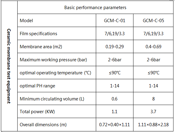 Characteristics of Ceramic Membrane Experimental Equipment: