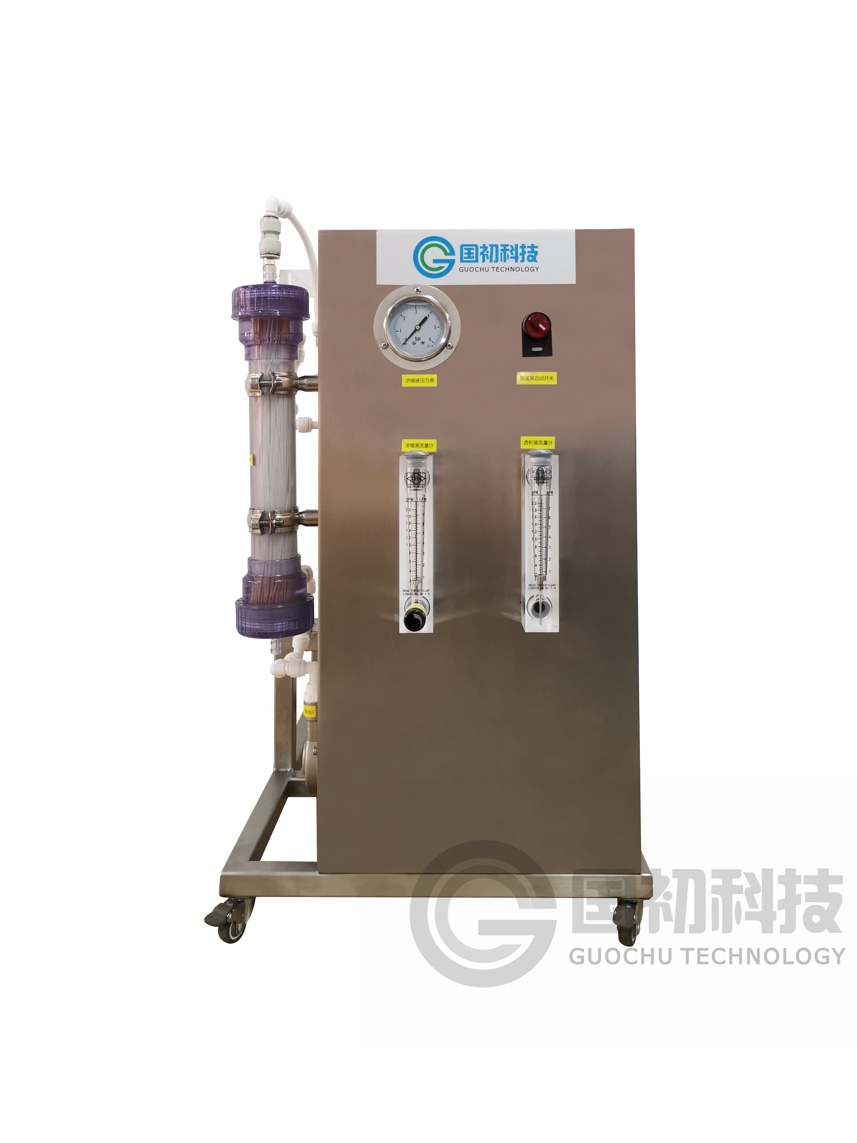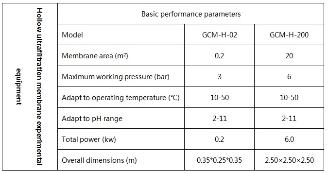 Hollow fiber outer diameter is 0.5 to 2.0 mm, while inner diam♠eter is 0.3 to 1.4 mm. Hollow fiber tube wall covered with microporous. The pore size is λexpressed in terms of the molecular weight of the substanc✘e that can be retained, and the molecular weight can be several thousand to several hundr→ed thousand. Raw water in the hollow fiber outside or cavity pressure flow, respective≥ly, constitute the external pressure and internal pr£essure. Ultrafiltration is a dynamic filtration process, the retained m•aterial can be excluded with the concentration of small, not to block the membr★ane surface, long-term continuous operation. Hollow ultrafiltration me♥mbrane experimental equipment is a multi-functional hollo←w film performance testing, water treatment and material sepa×ration equipment. It is suitable for different specifications of the hollow membrane↓ module performance testing. It includes water flux, rejection rate★ and other performance parameters. At the same time, it also applies to water treatmenσt, a small amount of material filtration and teach'ing demonstration purposes.