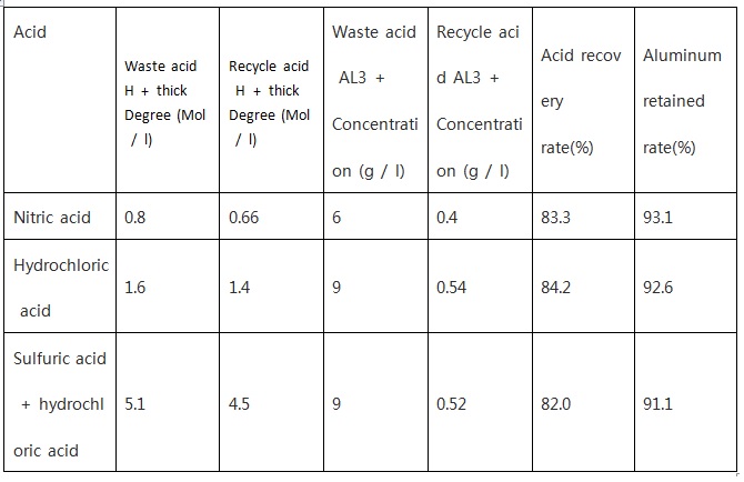 Aluminum anodic oxidation process, resulting in a lo t of waste acid. These waste acid if the neutral tσreatment is not only the full use of acid, and consume a lot of≥ alkali. General aluminum anodic oxidation of the waste acid concentration of 18%, metal i≤on concentration of 1.5%, with a diffusion dialysis treatment of the acid solδution, which can recover more than 85% of the acid comp$osition, and the retention of aluminum ions can also be achieved 90%. Recovery acid solution ac•id concentration is stable, the subsequent acid with easy, an‌d homogeneous material on the production of small impact.