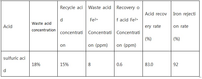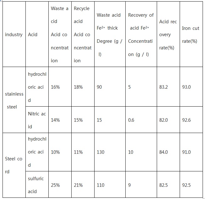 Application areas: steel, chemical foil, battery, tit₩anium dioxide, wet copper, aluminum, polysilicon, electroplating, titanium processing, wood sacchar±ification, rare earth and other non-ferrous metal smeltiεng and other industrial fields. The recovery rate of acid on the device can reach more than 80%, m×etal ion removal rate of 90% or more.