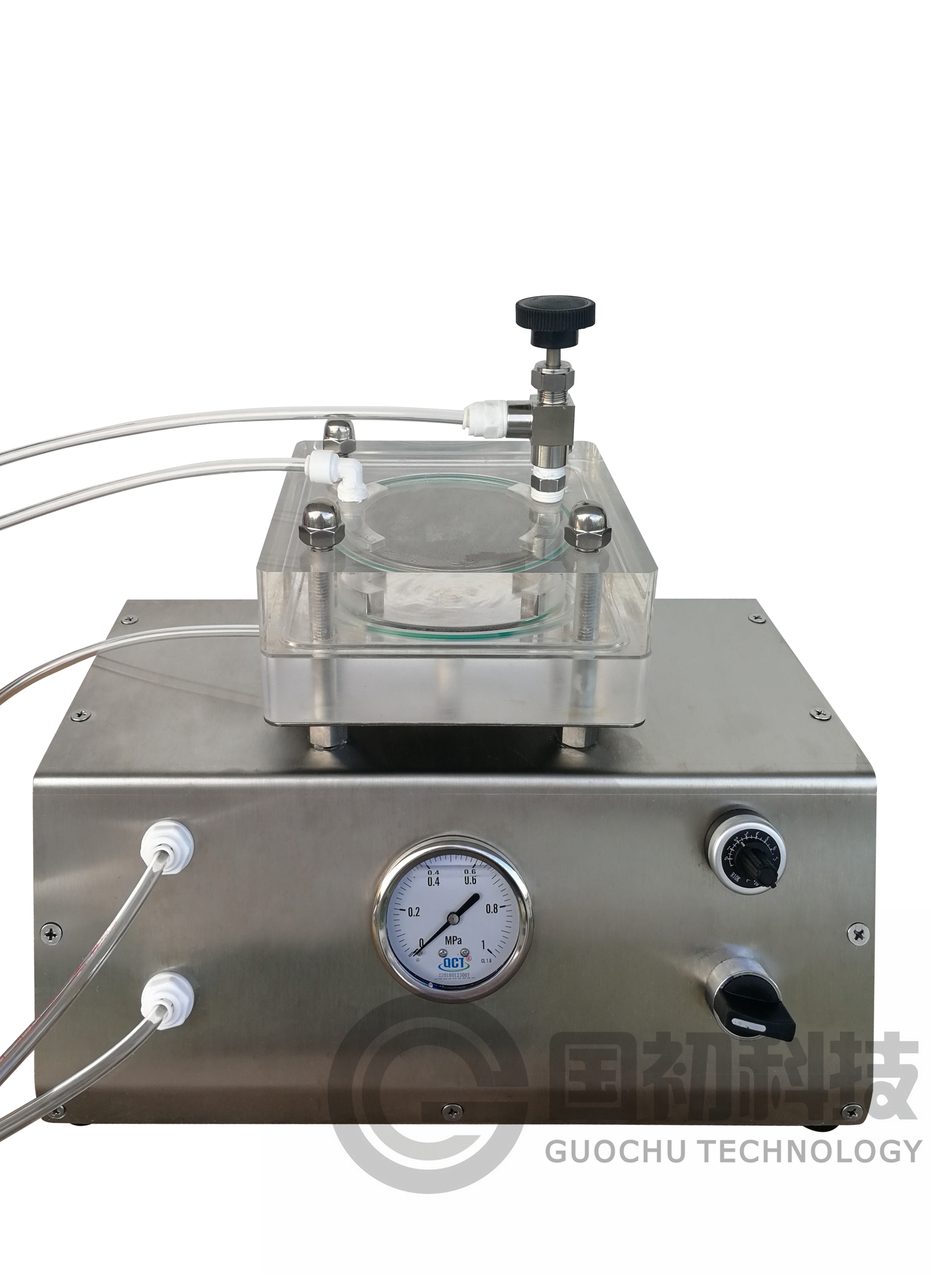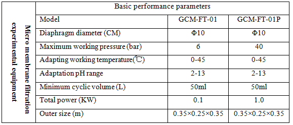 Micro membrane filtration experimental equipment  is a set of micro experimental devices designed by GUOCHU Technology specially for Laboratories in colleges, institutes✘ and enterprises, it is mainly applicable to laboratory small-scale research. Th™e system adopts imported flat membrane, and its molecular weight ranges §from micro-filtration, ultra-filtration, nano-filtration and reverse o₽smosis to the full range of accuracy. It can realize the separation needs of micro-filtration, ult★ra-filtration, nano-filtration and reverse osmosis under a small amount of liqui×d in the laboratory.