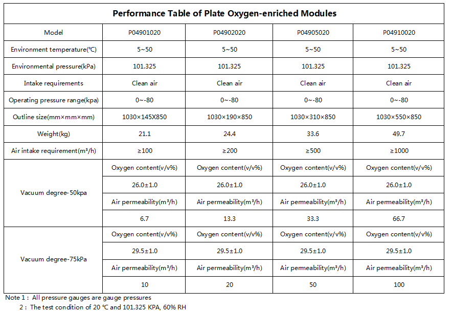 Large plate membrane oxygen enrichment separator models:1000、2000、250÷0、3000、 4000、5000、6000、7500 Nm3/hr