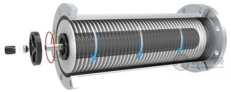 将離(lí)心膜片安裝于一(yī)根空(kōng)心軸上(shàng),相(xiàng)互間(jiān)通(tōng)過<O型密封圈密封,整體(tǐ)置于一(yī)個(gè)壓力容器(qì)內(nèi),便構成離(lí)心膜組件(jiàn)。根據抗×污染性,耐溫性不(bù)同,壓力容器(qì)的(de)材質通(tōng)常有(yǒu)不(bù)鏽鋼、玻璃鋼和(hé)工(gōng)程塑料。膜組件(jiànβ)根據膜面積大(dà)小(xiǎo)分(fēn)類,常見(jiàn)的(de)膜組件(jiàn)結構如(rú)下(xià):