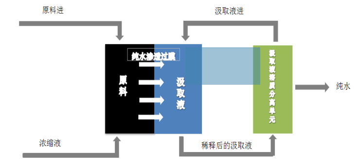 傳統水(shuǐ)處理(lǐ)技(jì)術(shù)往往運行(x∞íng)能(néng)耗偏高(gāo),與反滲透過濾方式不(bù)同,正向滲透是(shì)滲透壓驅動的(de)自(zì)然滲透現(xiàn)象,不(bù)需要(yào)額外(wài♦)施加驅動壓力。正滲透運行(xíng)過程中分(fēn)離(lí)膜兩側分(fēn)别是(shì)低(dī)滲透壓的(de)原水(shuǐ)(如(r¥ú)污水(shuǐ),待濃縮液等)及高(gāo)滲透壓的(de)汲取液。該過程能(néng)夠允許水(shuǐ)從(cóng)原水(shuǐ♦)高(gāo)效的(de)滲透至汲取液中,并得(de)到(dào)稀釋的(de)汲取液及濃縮的(de)原水(shuǐ),但(dàn)單一(yī) 正滲透過程不(bù)能(néng)直接得(de)到(dào)純水(shuǐ),需要(yào)對(duì)稀釋的(de)汲取液進行(xíng)再濃縮分(fēn)離(l¥í)出純水(shuǐ)。