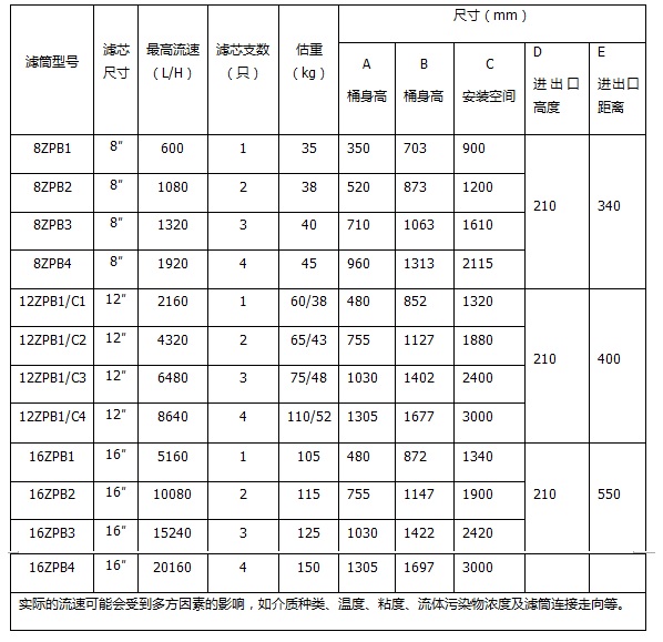 TM 濾筒技(jì)術(shù)參數(shù)表