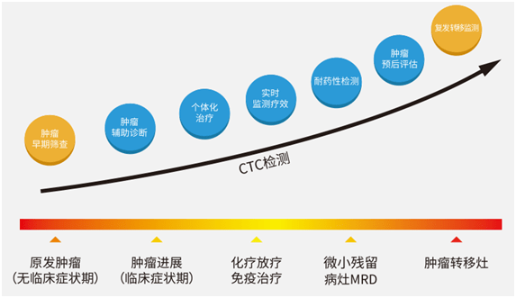 早期的(de)治療幹預将有(yǒu)效提高(gāo)治療效果,因此CTC檢測具有(yǒu)豐富的(de)臨床診療價值,如(rú)腫瘤早期篩查、腫瘤輔助診斷、↔個(gè)體(tǐ)化(huà)治療、實時(shí)監測療效、耐藥性檢測、腫瘤預後評估、複發轉移檢測等。