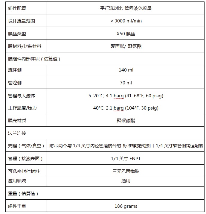 3M™ Liqui-Cel™ MM-1.7x8.75系列膜接觸器(qì)産品參數(shù)表