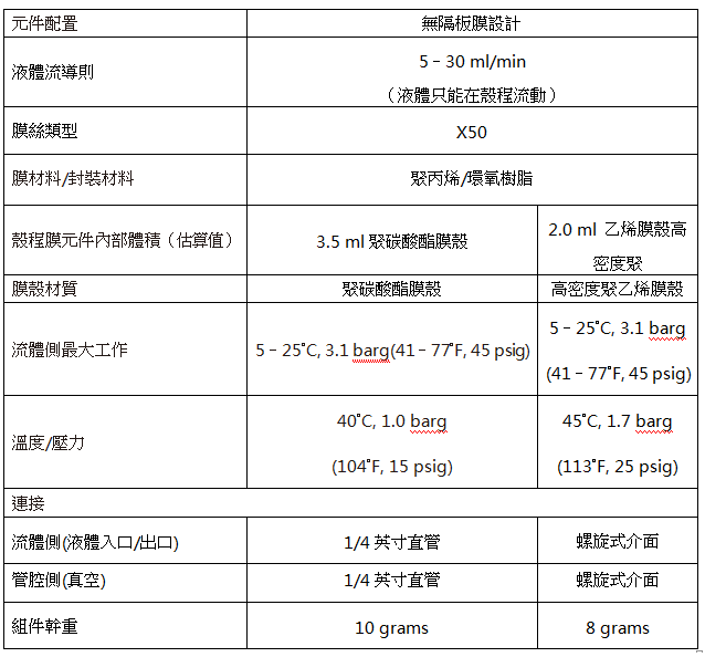 3M™ Liqui-Cel™ MM-0.5x1系列膜接觸器(qì)產品參數表