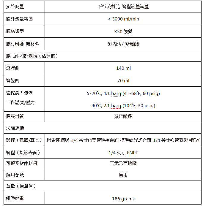 3M™ Liqui-Cel™ MM-1.7x8.75系列膜接觸器(qì)產品參數表