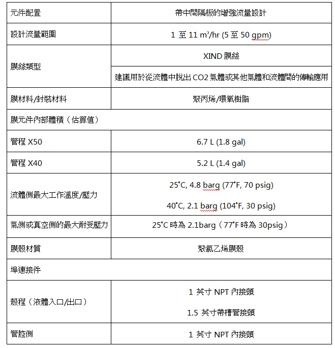 3M™ Liqui-Cel™ EXF-8X20系列膜接觸器(qì)產品參數表