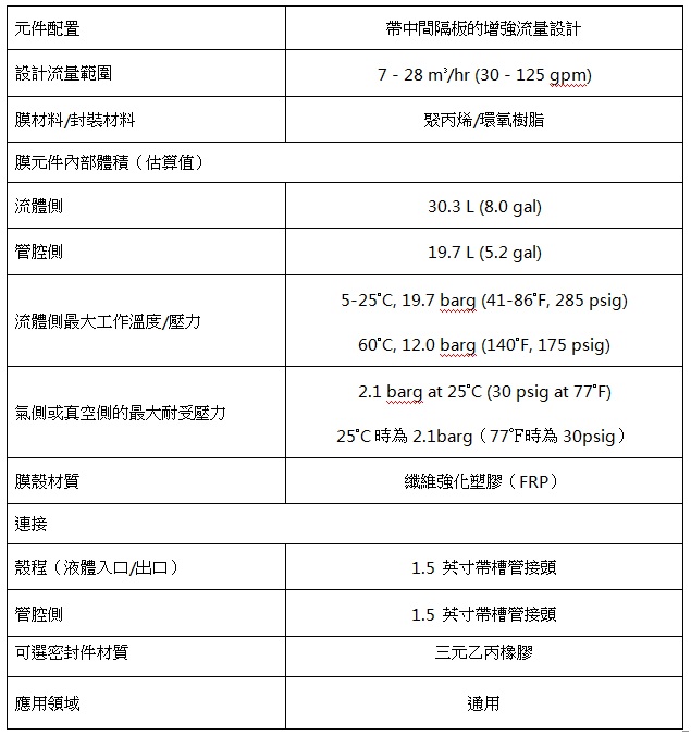 3M™ Liqui-Cel™ EXF-8x80系列膜接觸器(qì)產品參數表
