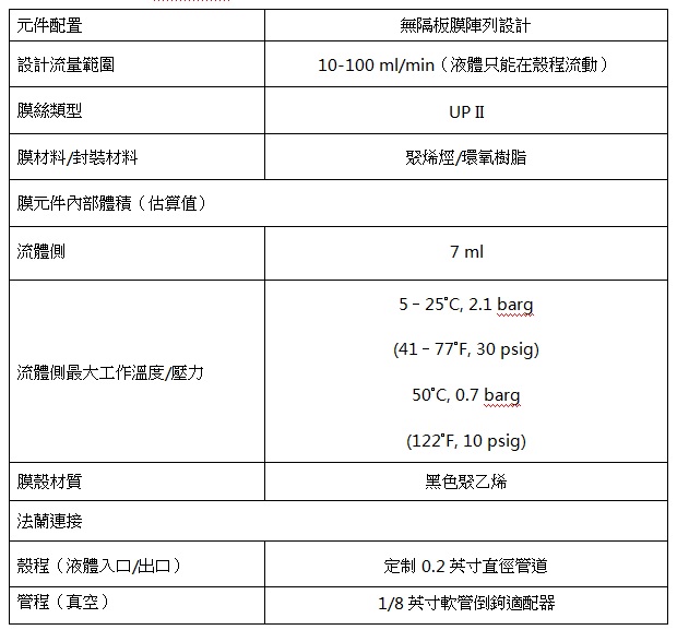 3M™ Liqui-Cel™ SP-1X2系列膜接觸器(qì)產品參數表