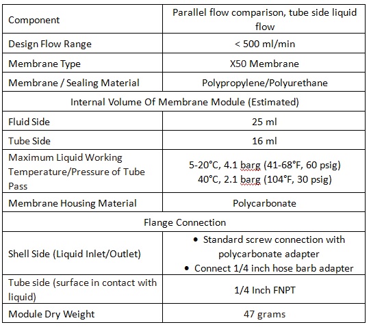 3M™ Liqui-Cel™ MM-1x5.5 Series Membrane Contactor Parameters