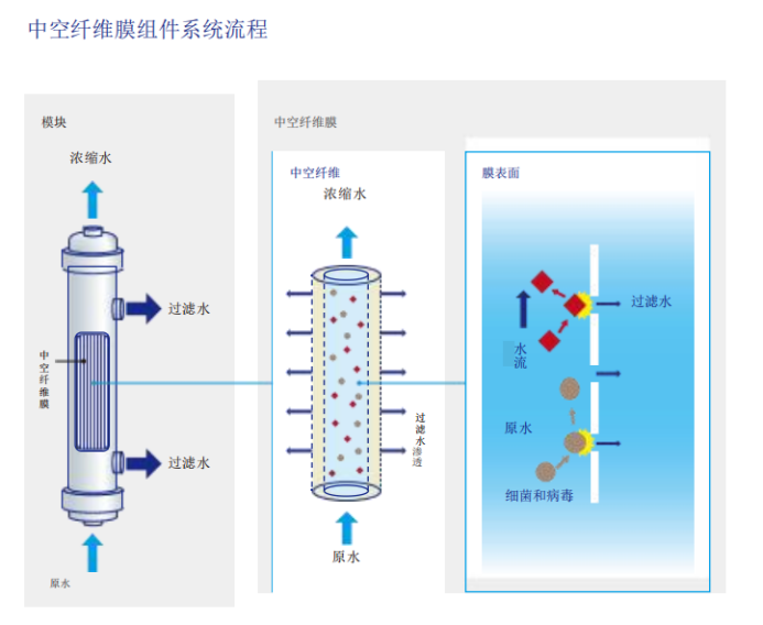 使用(yòng)膜過濾系統的(de)淨水(shuǐ)處理(lǐ)可(kě)以物(wù)理(lǐ)去(qù)除細菌、病毒和(héφ)混濁物(wù)質。