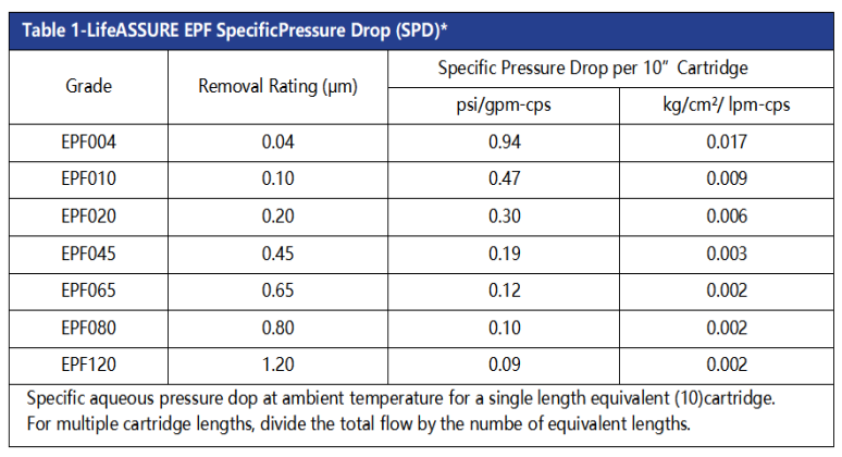 3M™EPF終端系列濾芯參數(shù)表: