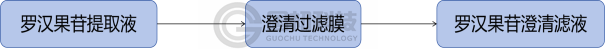 國(guó)初科(kē)技(jì)(廈門(mén))有(yǒu)限公司根據多(duō)年(nián)的(de₽)膜分(fēn)離(lí)技(jì)術(shù)應用(yòng)經驗,開(kāi)發出适用(yòng)于羅漢果苷的(de)澄清過濾膜。澄清過濾膜具有(y♦ǒu)深層複合結構,适用(yòng)高(gāo)粘度物(wù)料,不(bù)僅能(néng)有(yǒu)效攔截顆粒雜(zá)質,對(duì)微(wēi)小(xiǎo™)的(de)雜(zá)質也(yě)有(yǒu)吸附去(qù)除效果。澄清過濾膜能(néng)提升羅漢果苷濾液品質,減輕下(xià)遊提♥取工(gōng)藝負擔,對(duì)最終成品的(de)品質提升也(yě)有(yǒu)幫助。澄清過濾膜采用(yòng)死端過濾,無循環體(tǐ)積,收率 高(gāo)。其工(gōng)藝流程圖如(rú)下(xià):